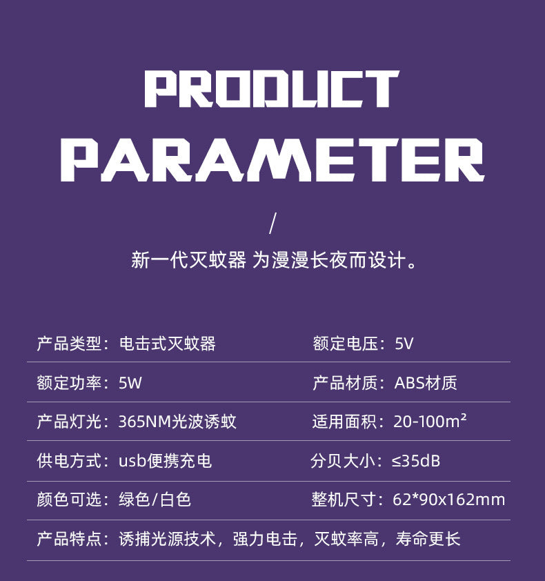 Electric Mosquito Killer Lamp with USB Charging, Indoor/Outdoor Mosquito Repellent and Trap