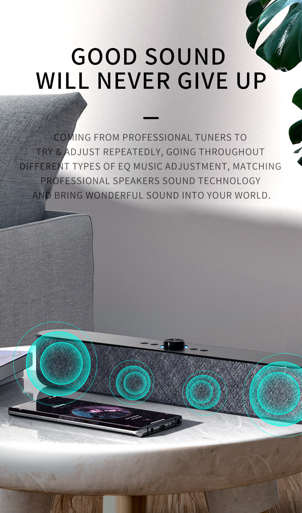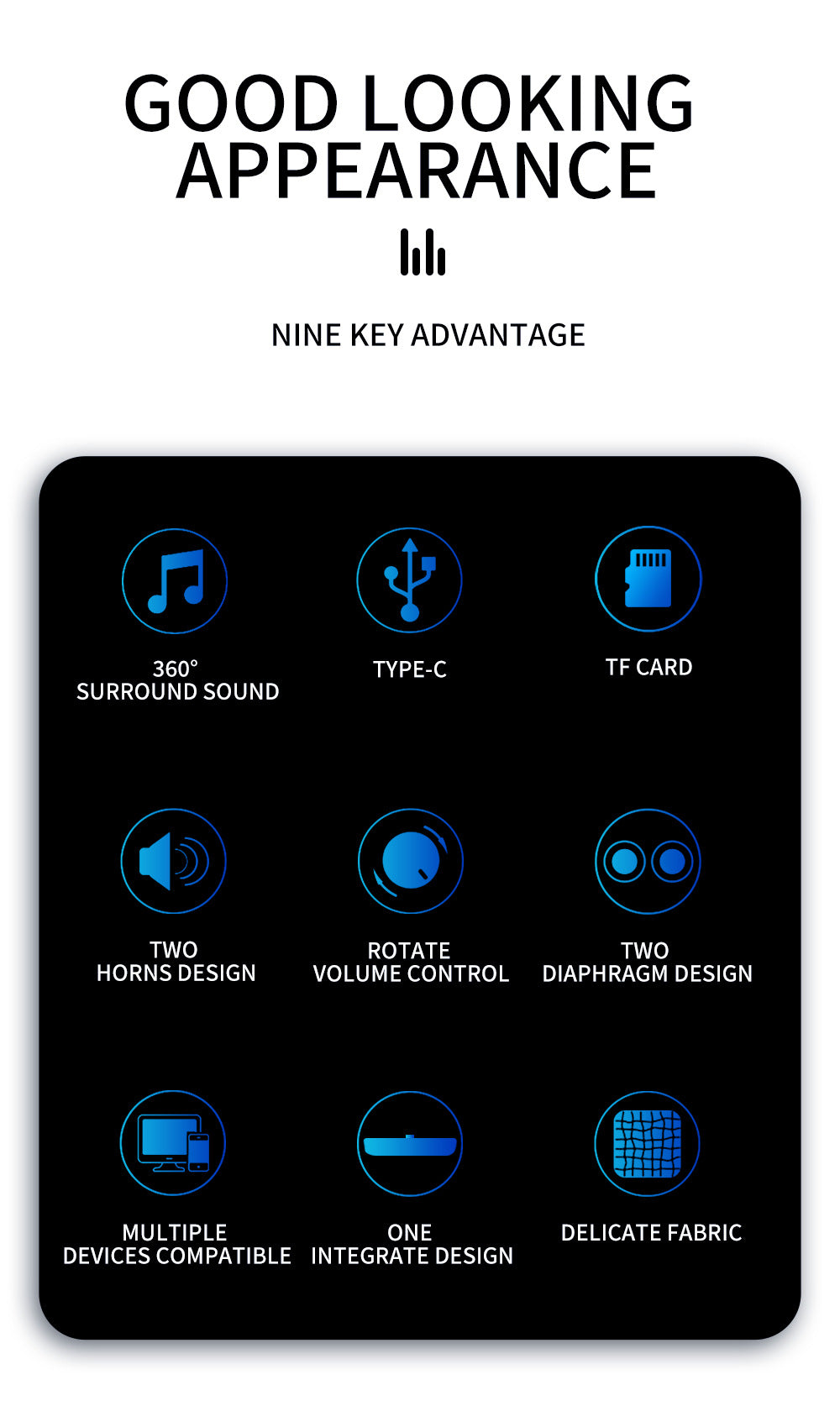 - Dual Speakers & Bass Radiator for rich, clear sound with enhanced bass