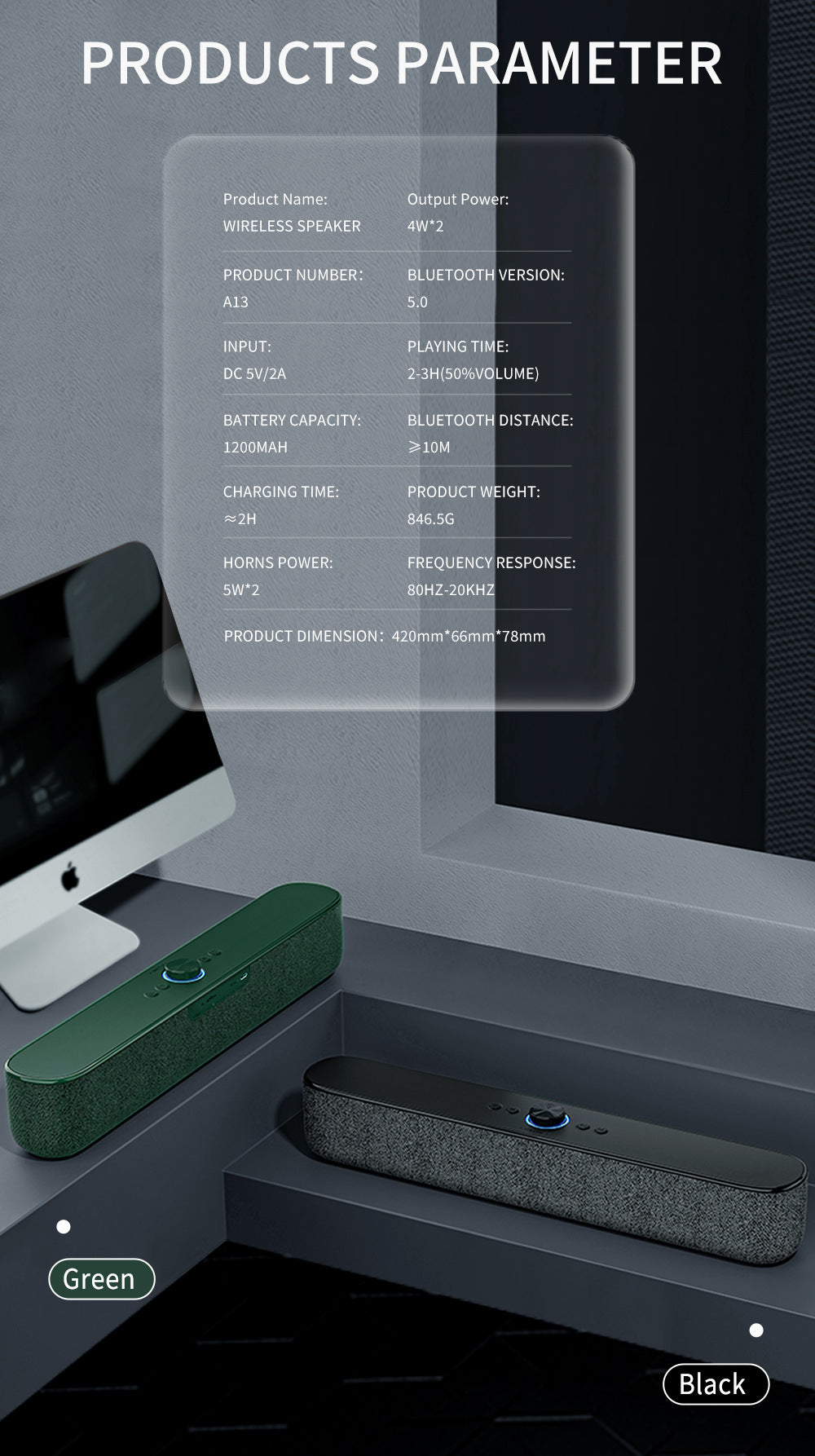 AVWOO A13 Wireless Bluetooth Speaker | Long Bar Design with Dual Speakers & Bass Radiator
