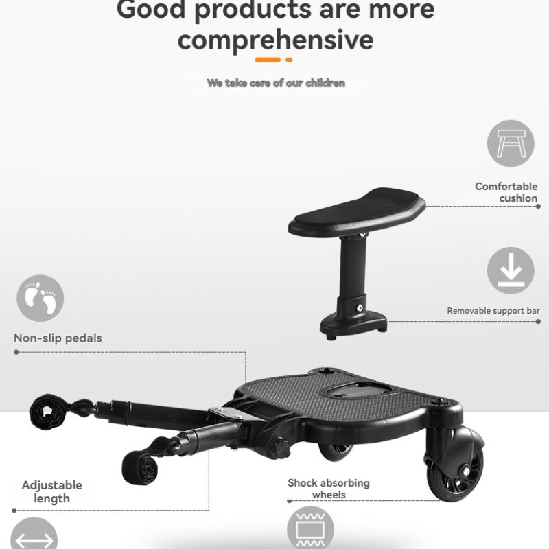 Make your outings more enjoyable and convenient with the Baby360 ROVER Stroller Board! Designed for toddlers aged 3-7 years, this versatile buggy board lets your little one ride in comfort with an adjustable seat or standing platform, easily attaching to most strollers for a smooth and secure experience.