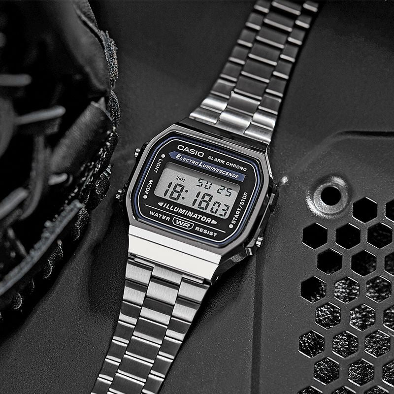 One of the standout features of the Casio A168WGG-1A Men's Digital Watch is its electro-luminescent backlight, which ensures that you can easily read the time in any lighting conditions. The backlight can be activated by pressing a button on the side of the watch, making it quick and easy to use.