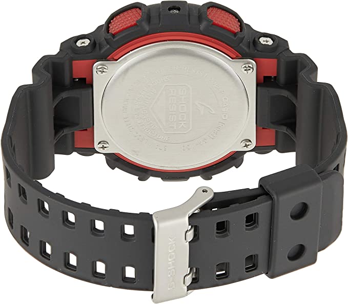 Featuring a sleek and rugged design, the GA-100-1A4 exudes a sporty appeal with its bold black resin case and band. The striking red accents add a pop of color, making this watch a standout accessory for any occasion.