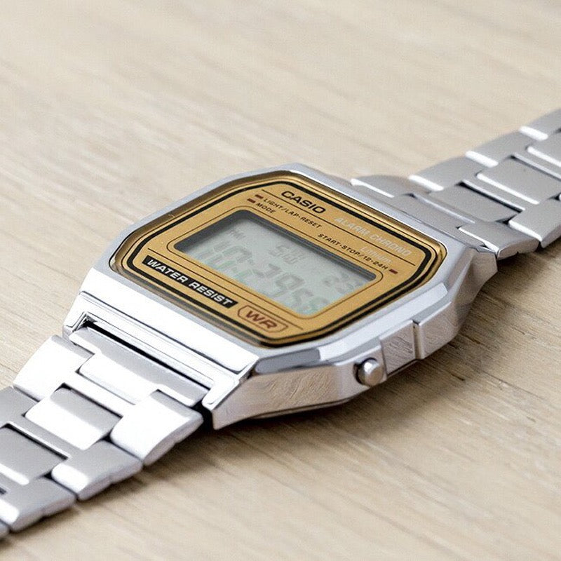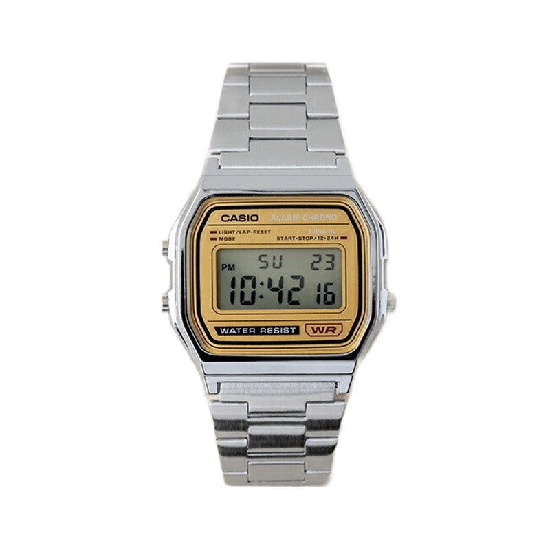 Introducing the Casio A158WEA-9 Digital Watch - a sleek and timeless timepiece designed for everyday wear. With its stainless steel band and gold-tone accents, this watch is both stylish and functional.