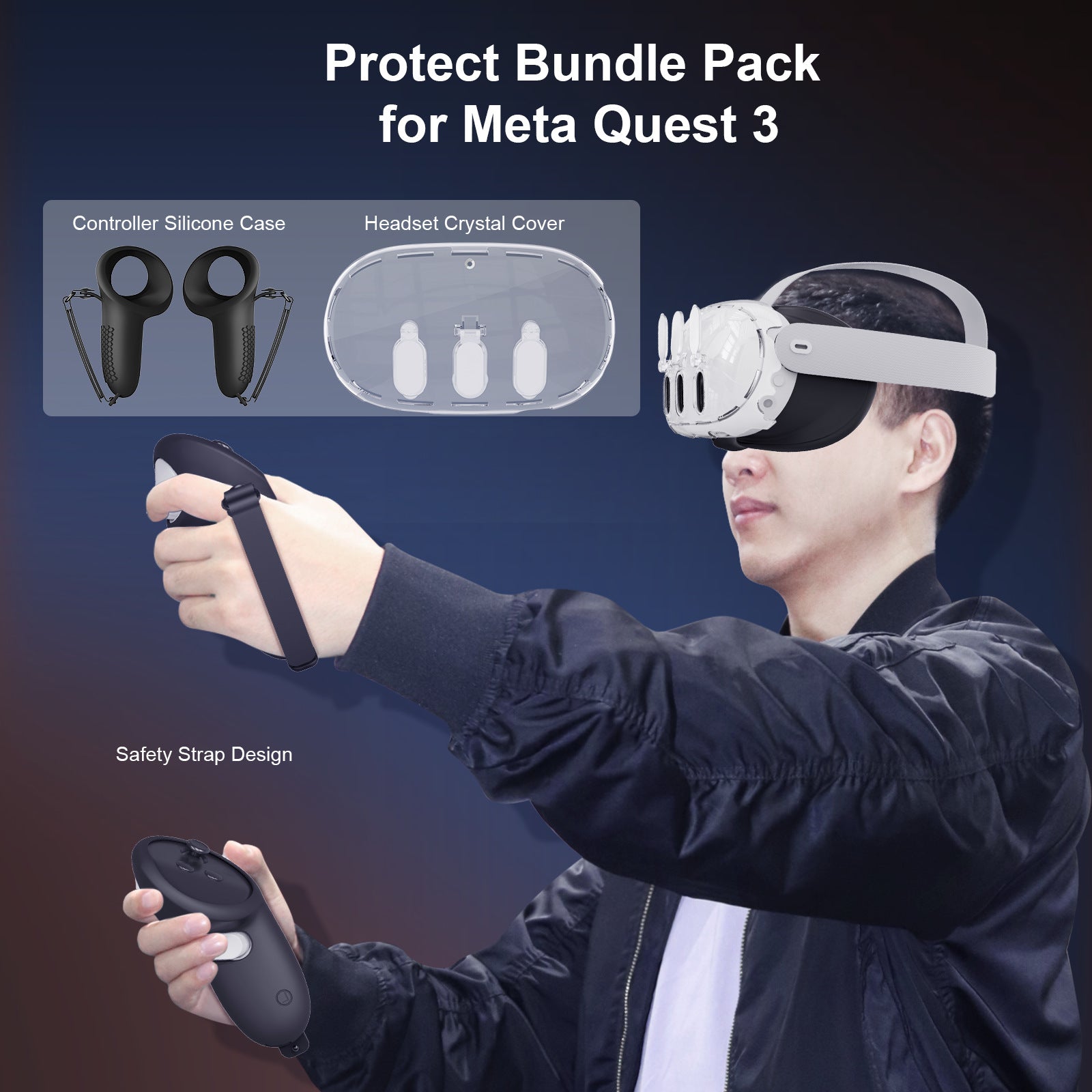 Compatible Meta Quest3 VR Headset Protective Shell, VR Lens Cover, Hand Grip Silicone Cover, and Face Mask