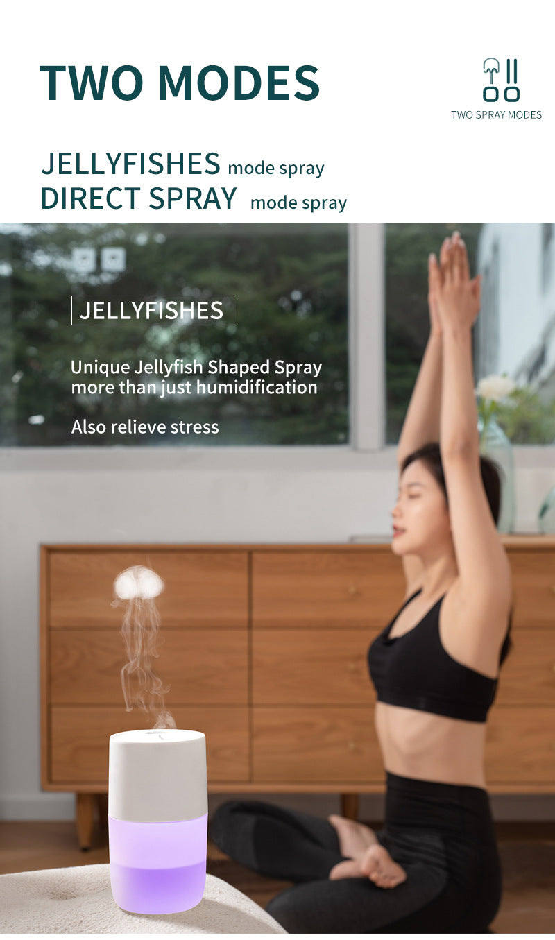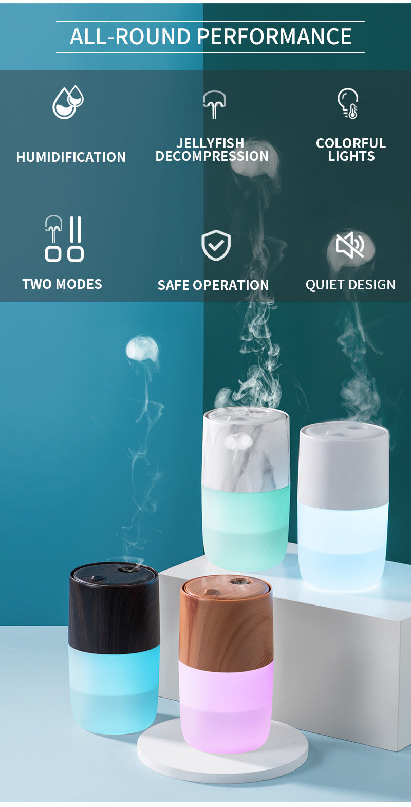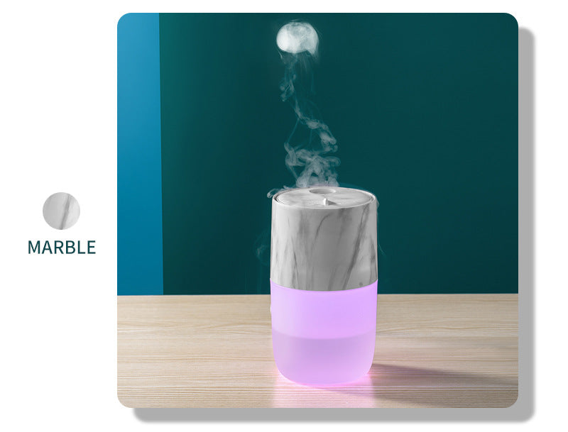 Introducing the Buzz Kids Creative Smoke Ring Humidifier, perfect for your household, car, or desktop! This new product is designed with a jellyfish fairy spray feature and aromatherapy function. The humidifier operates on USB power mode and is available in white, light wood, and marble colors.