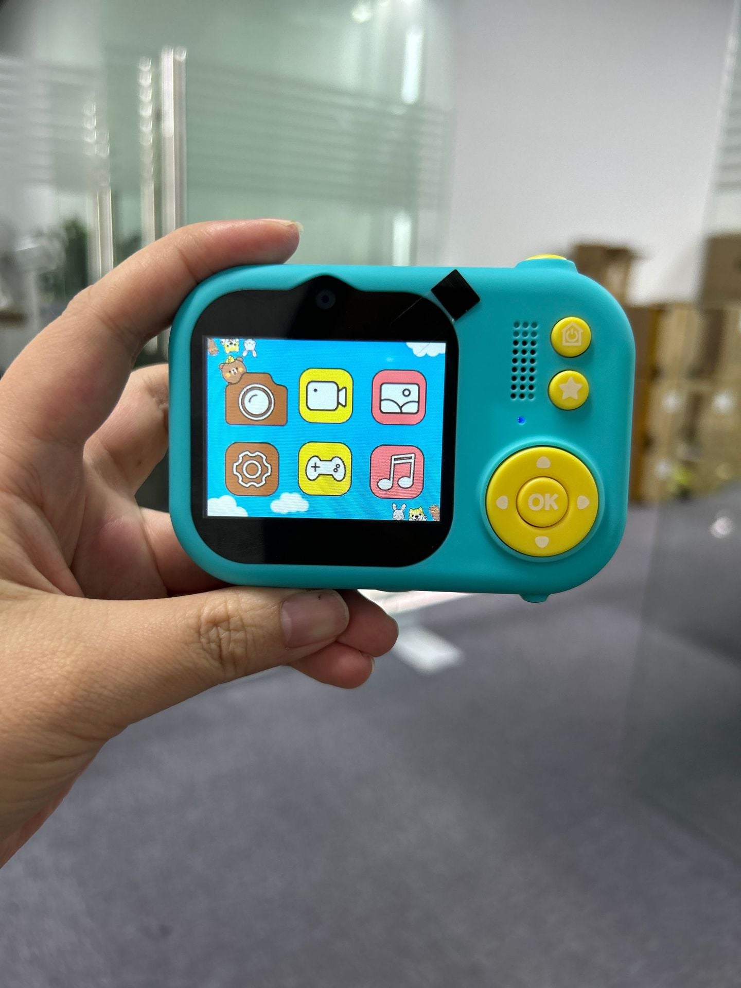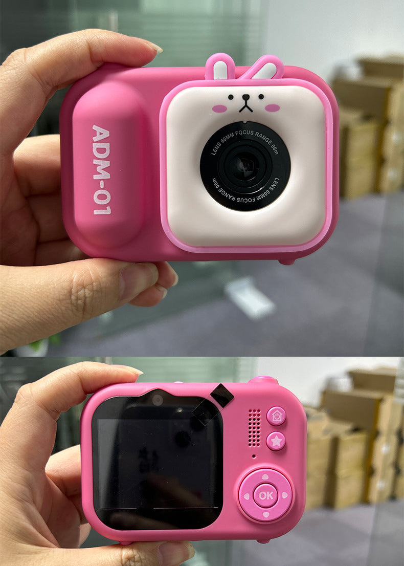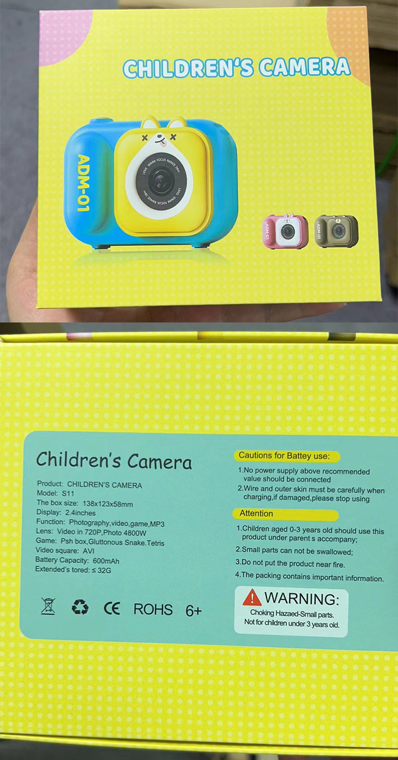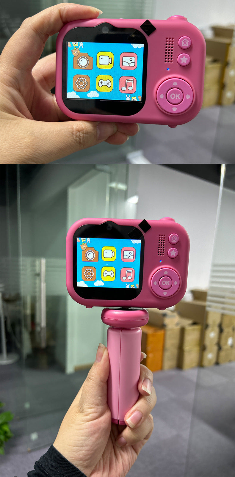 This camera has a 2.4" IPS screen and supports game, timer, video, photo, and continuous shooting functions. It's made of durable ABS material and supports TF card storage. The battery capacity is 600MAH, with a recording time of about 4 hours.