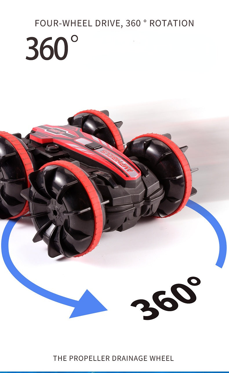 Buzz KidsThe RC Amphibious Vehicle is the ultimate beach toy that provides endless hours of fun for girls, boys, and anyone looking for some excitement. With its double-sided stunts and tumbling capabilities, this rotating amphibious vehicle is perfect for performing tricks and stunts on both land and water.