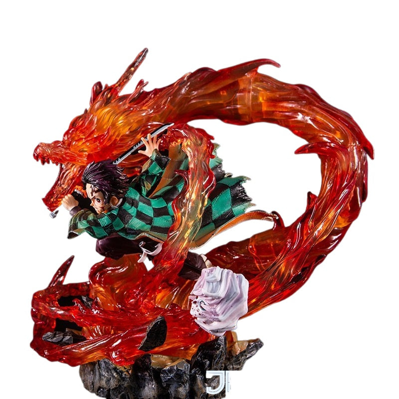 Experience the captivating world of Demon Slayer with this exquisite figure ornament. Inspired by the popular anime series, this ornament showcases a stunning scene featuring the Blade Fantasy House, Jane Carved Stove Gate, Tanjiro, and the mesmerizing glow of Kagura Fire.