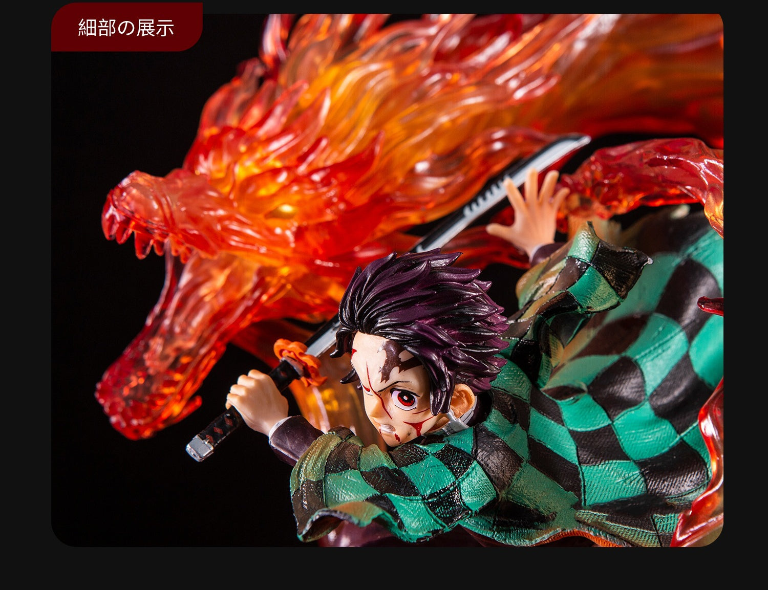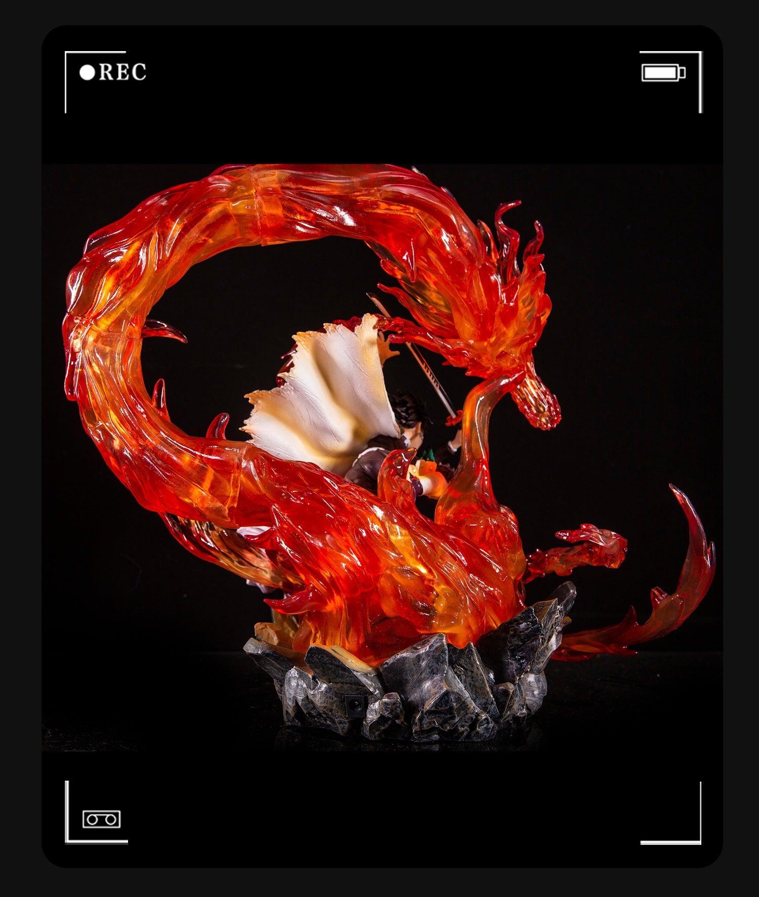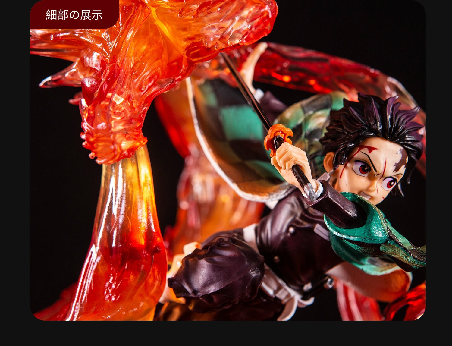 The centerpiece of this ornament is the iconic character, Tanjiro, depicted in a dynamic pose. His determined expression and carefully sculpted features bring the character to life. The Kagura Fire glow adds an enchanting touch, creating a captivating visual effect that will leave you in awe.