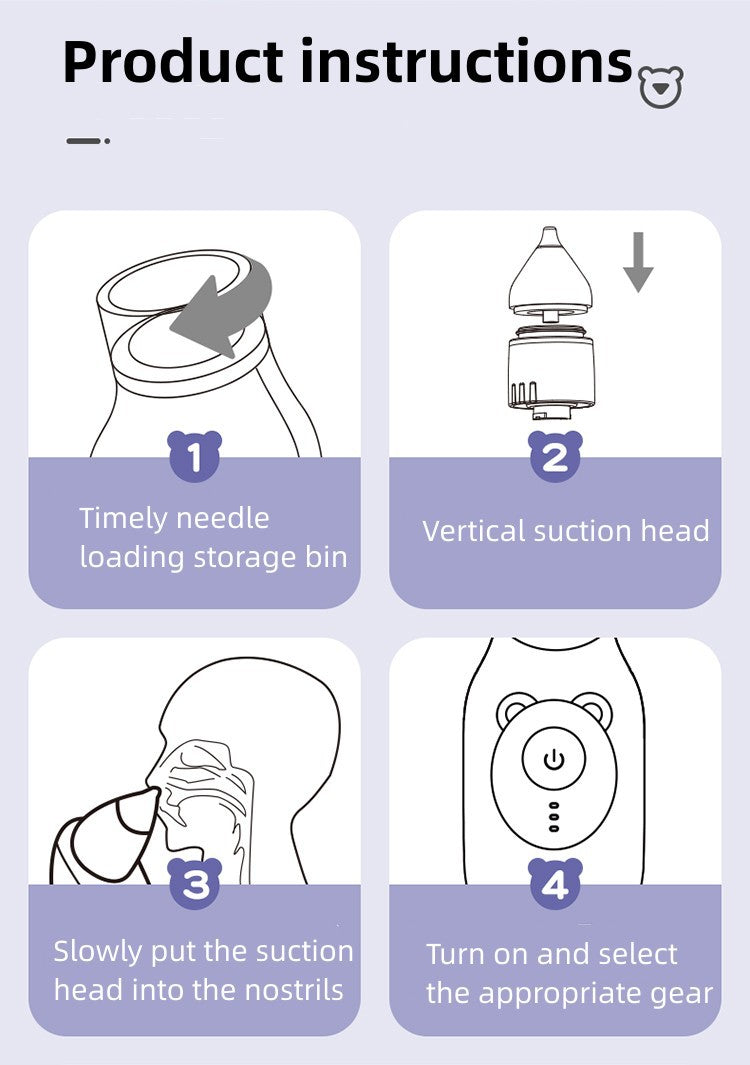 - Electric Nasal Aspirator: Efficiently clears nasal congestion with gentle suction, preventing backflow