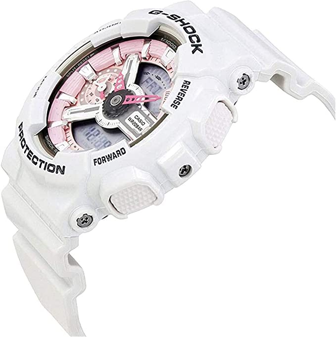 But the GMA-S110MP-7APR isn't just a functional timepiece - it's also a stylish accessory that's sure to turn heads. Its bright white resin band and case create a bold and eye-catching look that's perfect for those who want to make a statement with their accessories.