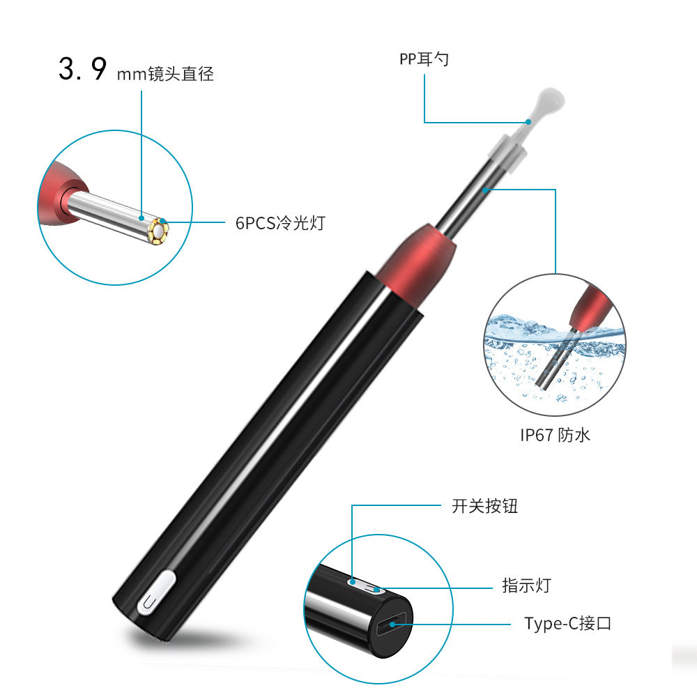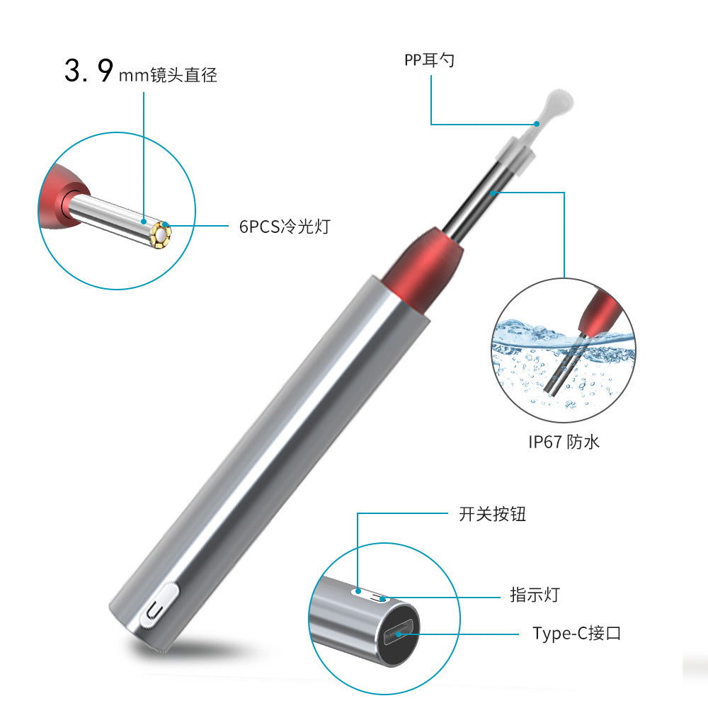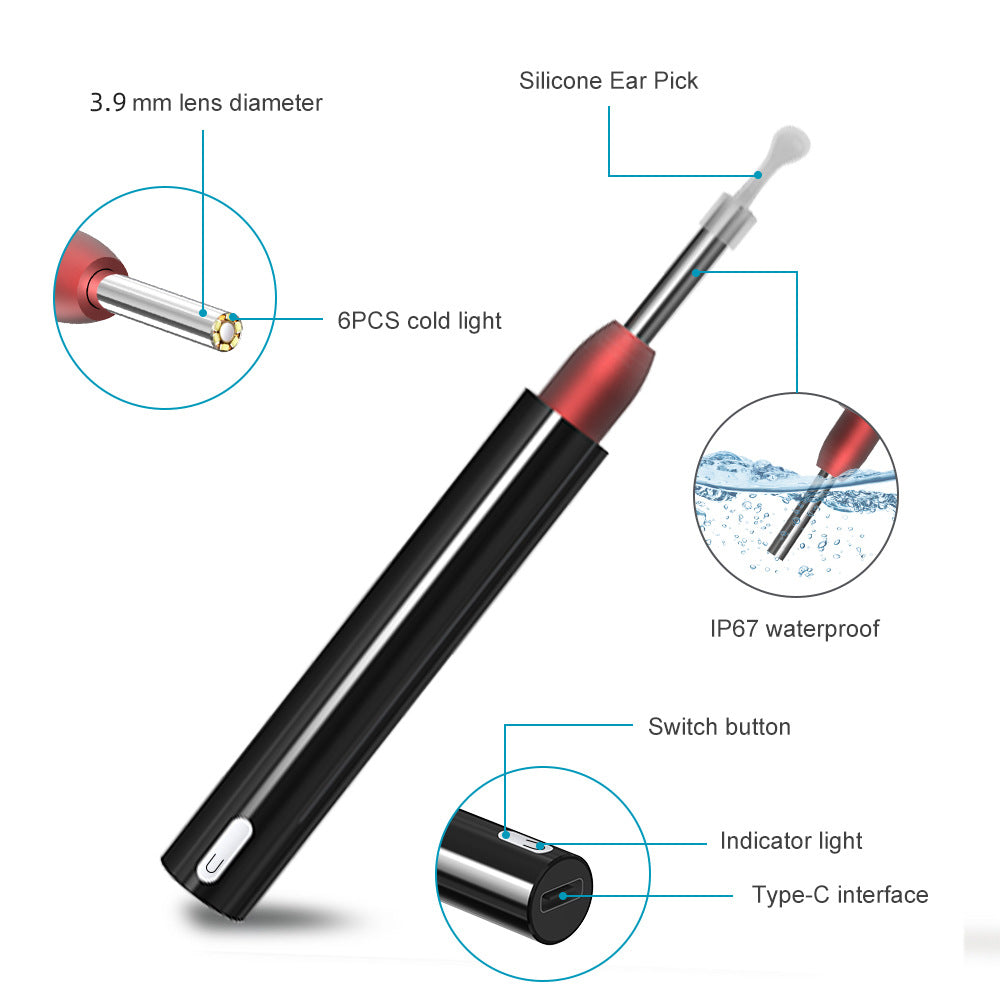 High-Definition Visual Ear Scoop - Wireless Ear Cleaning Tool & Oral Endoscope with 5MP Camera, 3.9mm Lens, and 6 LED Lights