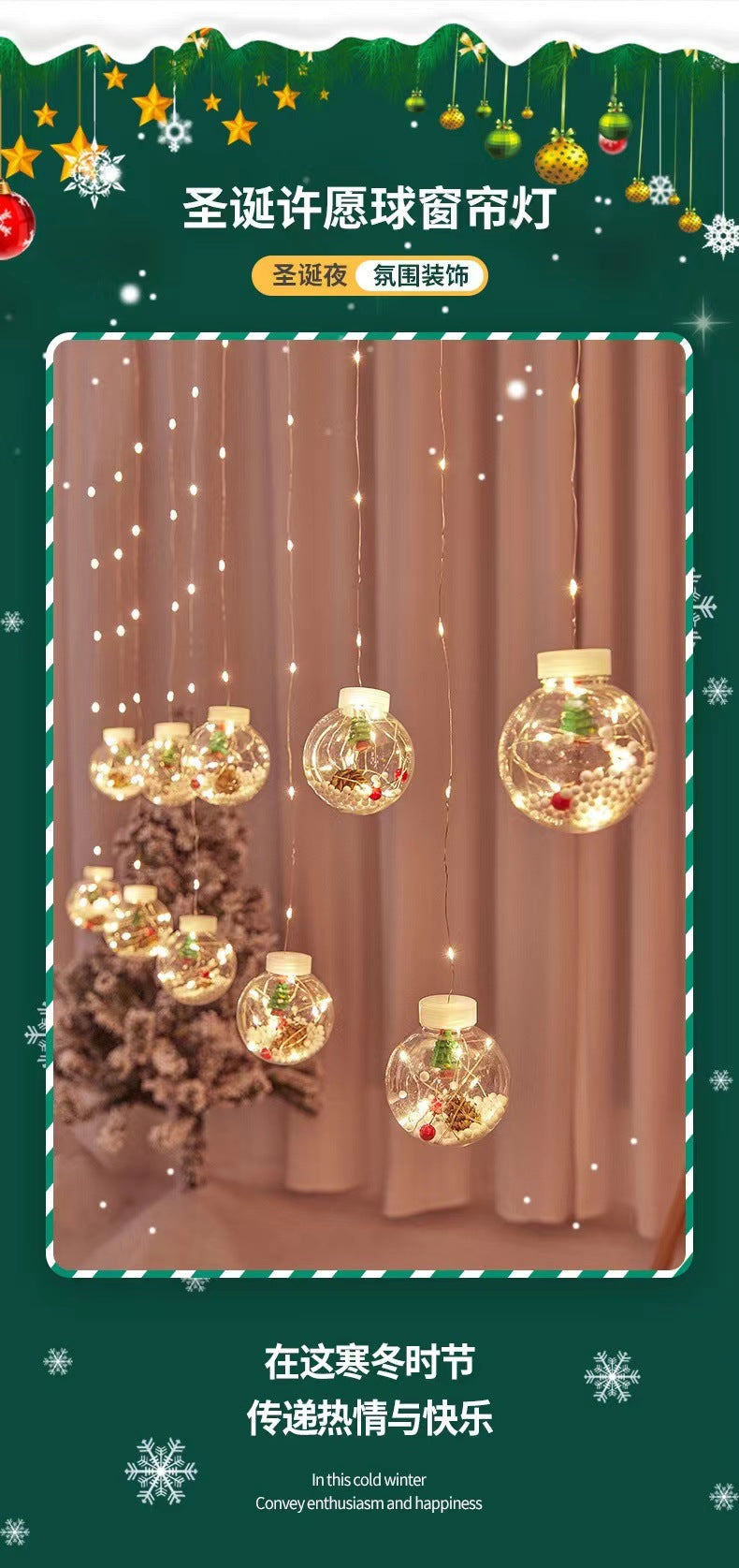 LED String Lights - Christmas Wishing Balls, Curtain Lights, Colorful Snowman, Christmas Tree, Window Decor, Wire Lights Curtain for Window Decoration