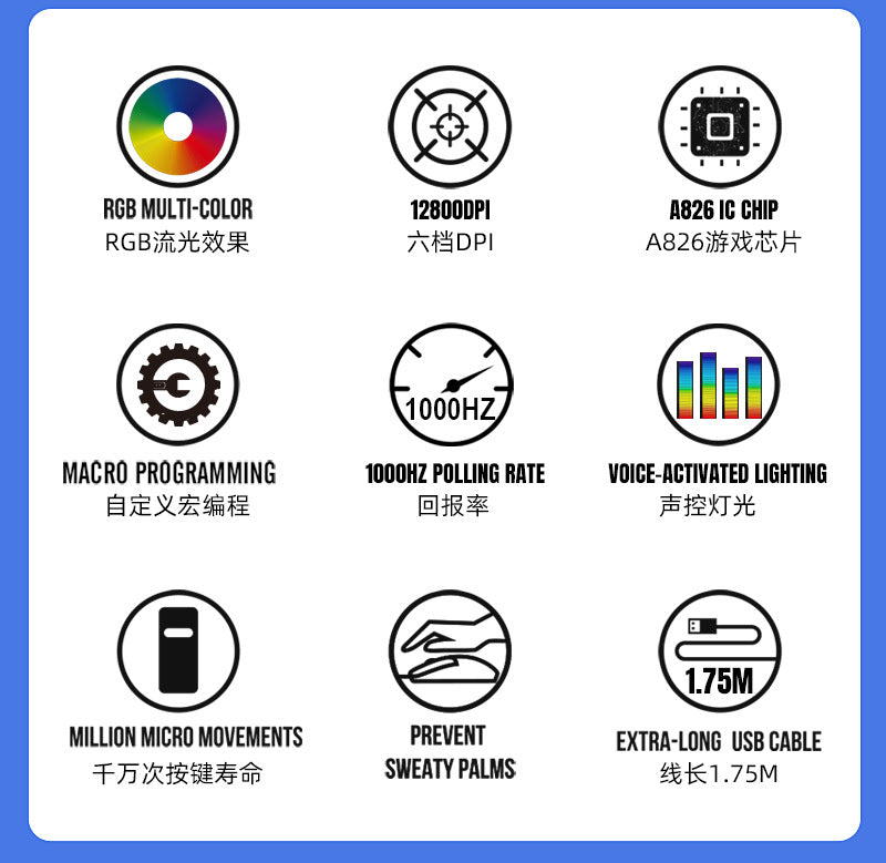Wired Mechanical Gaming Mouse with Macro Programming and RGB Lighting Description