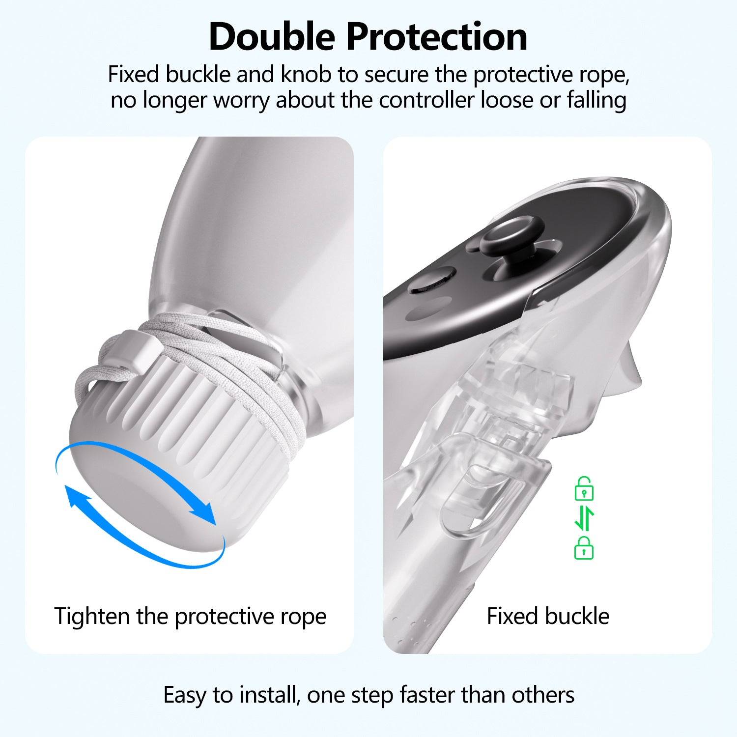 Seamlessly designed to fit Meta Quest 3S, Meta Quest 3, and Meta Quest 2 controllers. The secure locking mechanism ensures a snug fit, so you can swing with confidence and power without worrying about your gear coming loose mid-game.