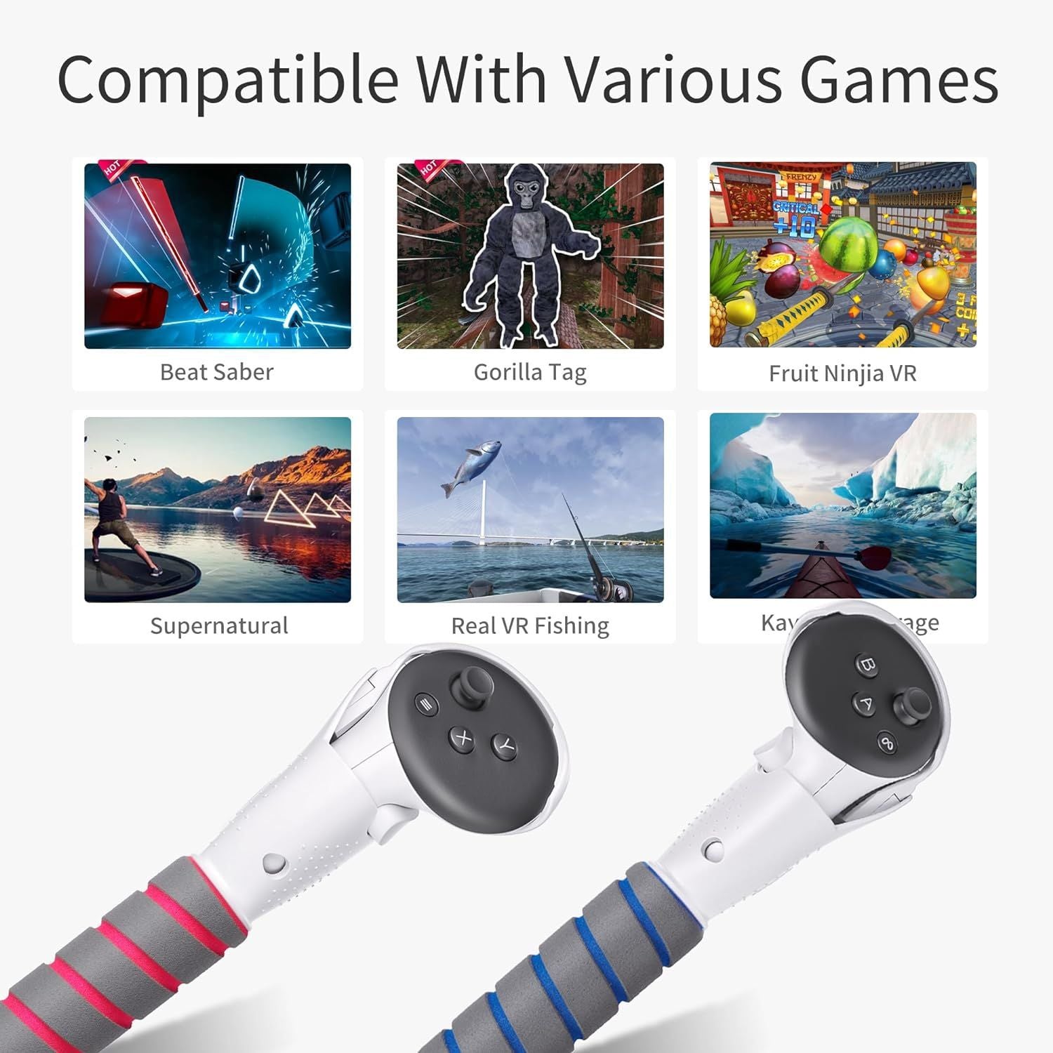 Meta Quest 3 VR Extended Handles – Anti-Slip Game Expansion Accessories for Golf, Beat Saber