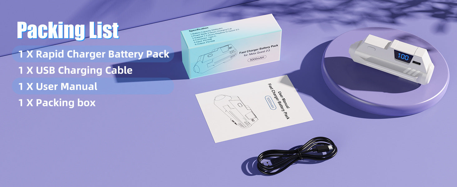 Keep your Meta Quest 3S, 3, or 2 charged for hours with this high-capacity VR power bank. Designed specifically for VR gamers, this portable charger features fast charging, a clear digital display, and a secure strap mount to stay out of your way during intense gameplay.