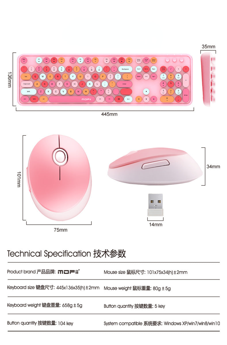 Elevate your workspace aesthetics and functionality with the 2.4G Wireless Keyboard and Mouse Set. Experience a blend of style and productivity with the charming SWEET Color Lipstick design, making a statement in any office or home setting.