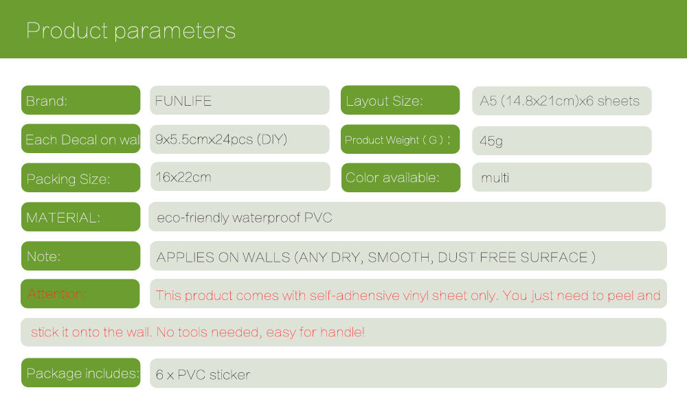 Add some fun and personality to your living space with these Nordic cartoon animal forest wall stickers. Made of waterproof PVC material, these self-adhesive wall stickers are perfect for decorating various spaces, such as living room, bedroom, study, dining room, kitchen, bathroom, porch, balcony, and even commercial spaces. Featuring cute and colorful illustrations of animals in a forest, these flat wall stickers are easy to apply and will instantly transform the look of any room.