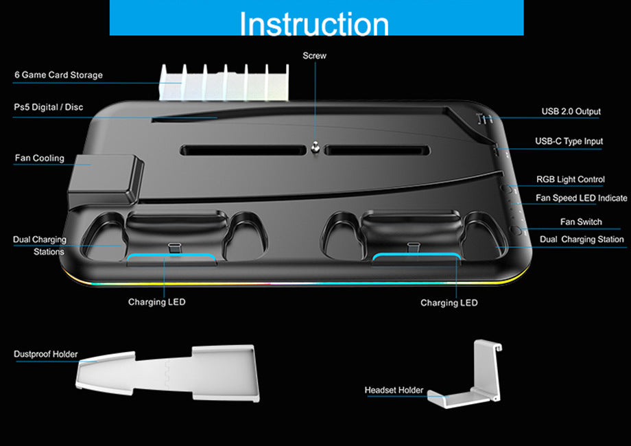 Upgrade your PS5 setup with this stylish and functional charging dock. Keep your controllers charged, your headset organized, and your game discs neatly stored, all while adding a vibrant touch of RGB lighting. Order now and elevate your gaming experience!