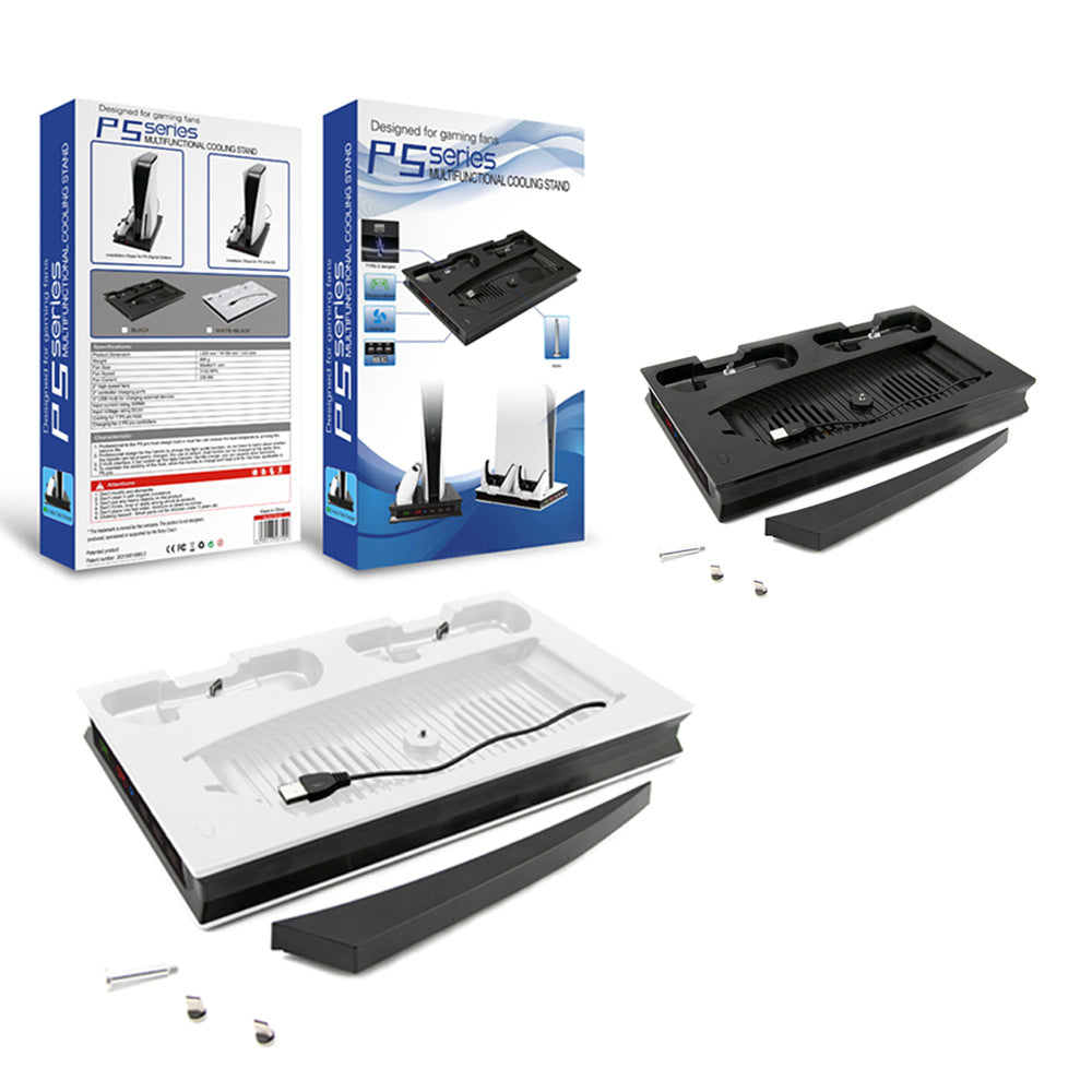 Elevate your PlayStation 5 experience with our premium 3-in-1 cooling stand, featuring active cooling, controller charging, and stunning RGB lighting - designed specifically for both PS5 Digital and Disc editions.