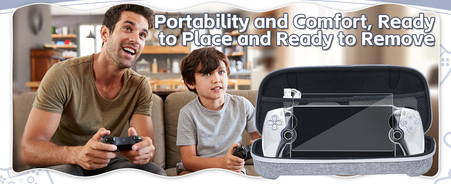 Keep your PS5 Portal safe from scratches, drops, and travel damage with this premium 3-in-1 protection bundle. Featuring a military-grade EVA case, crystal-clear tempered glass screen protector, and anti-slip thumb grips, this set ensures your handheld stays pristine during gaming on the go.