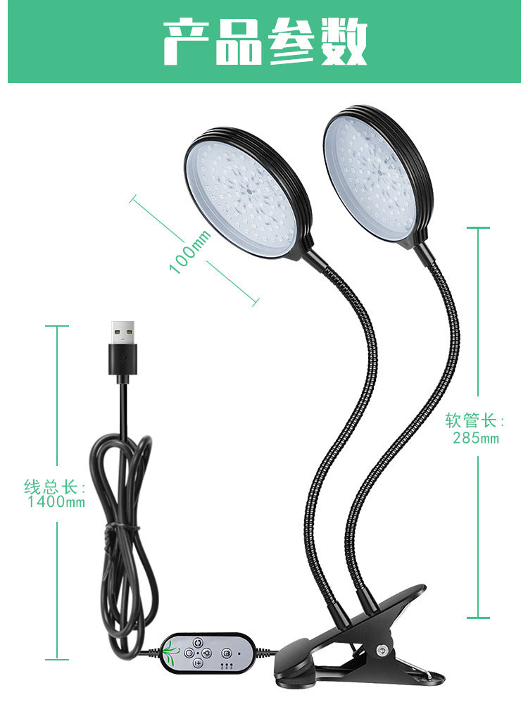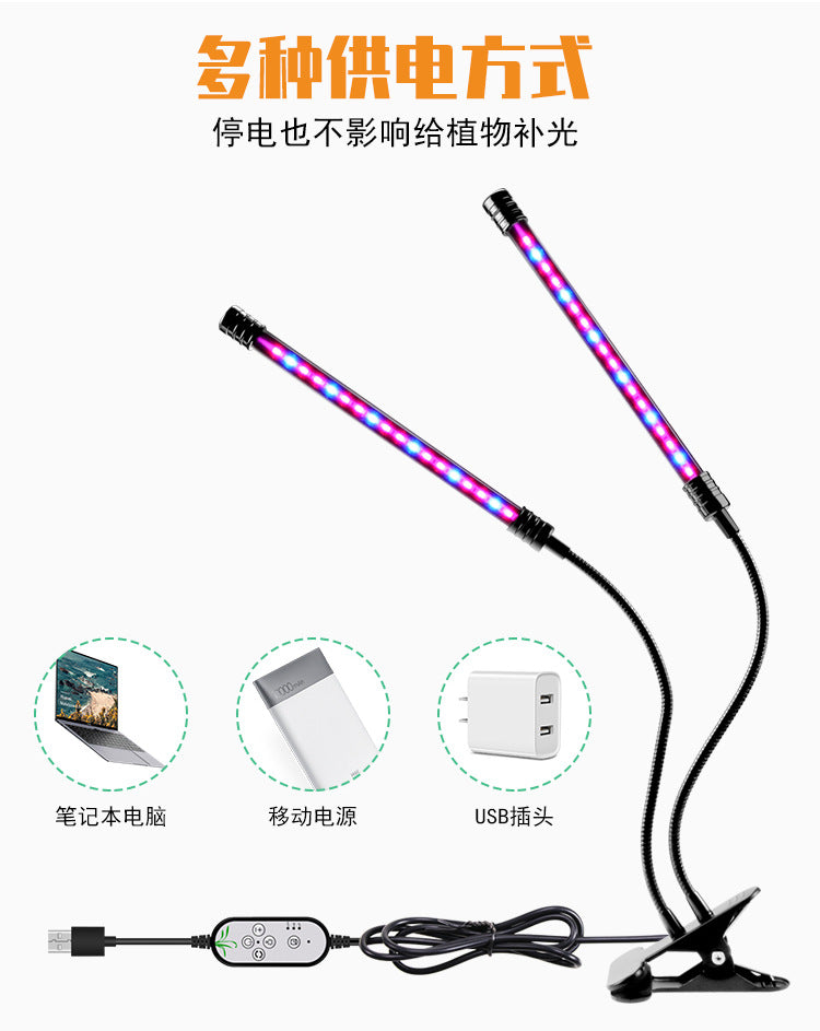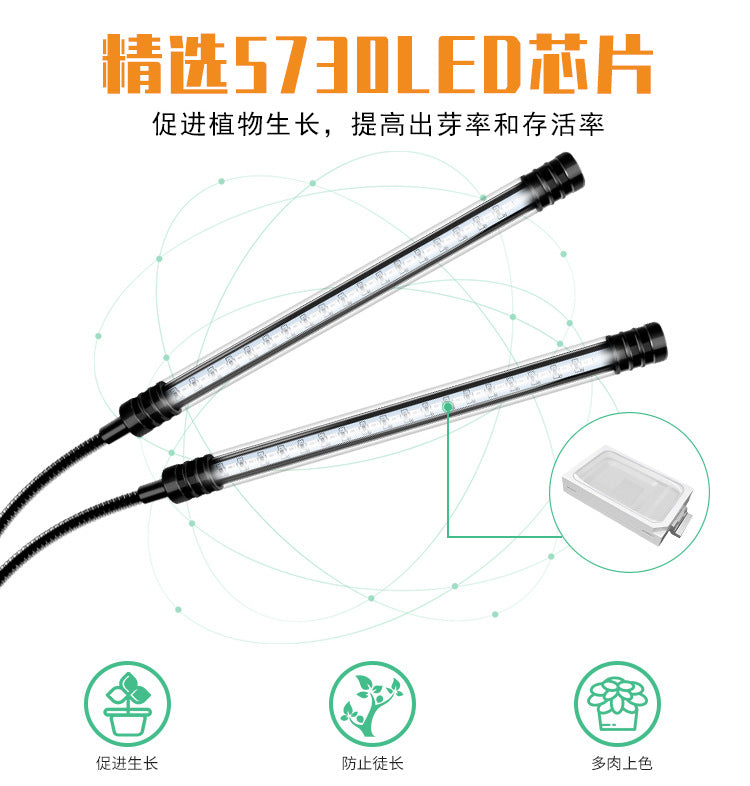 waterproof Lighting Clip-on Plant Grow Light, USB Adjustable Full Spectrum Light for Home, Waterproof Seedling Light 5V