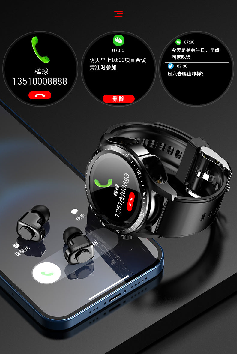 Smart Watch with TWS Headset - 2-in-1 Sports Watch with Heart Rate Monitoring, Bluetooth Call, and Tone