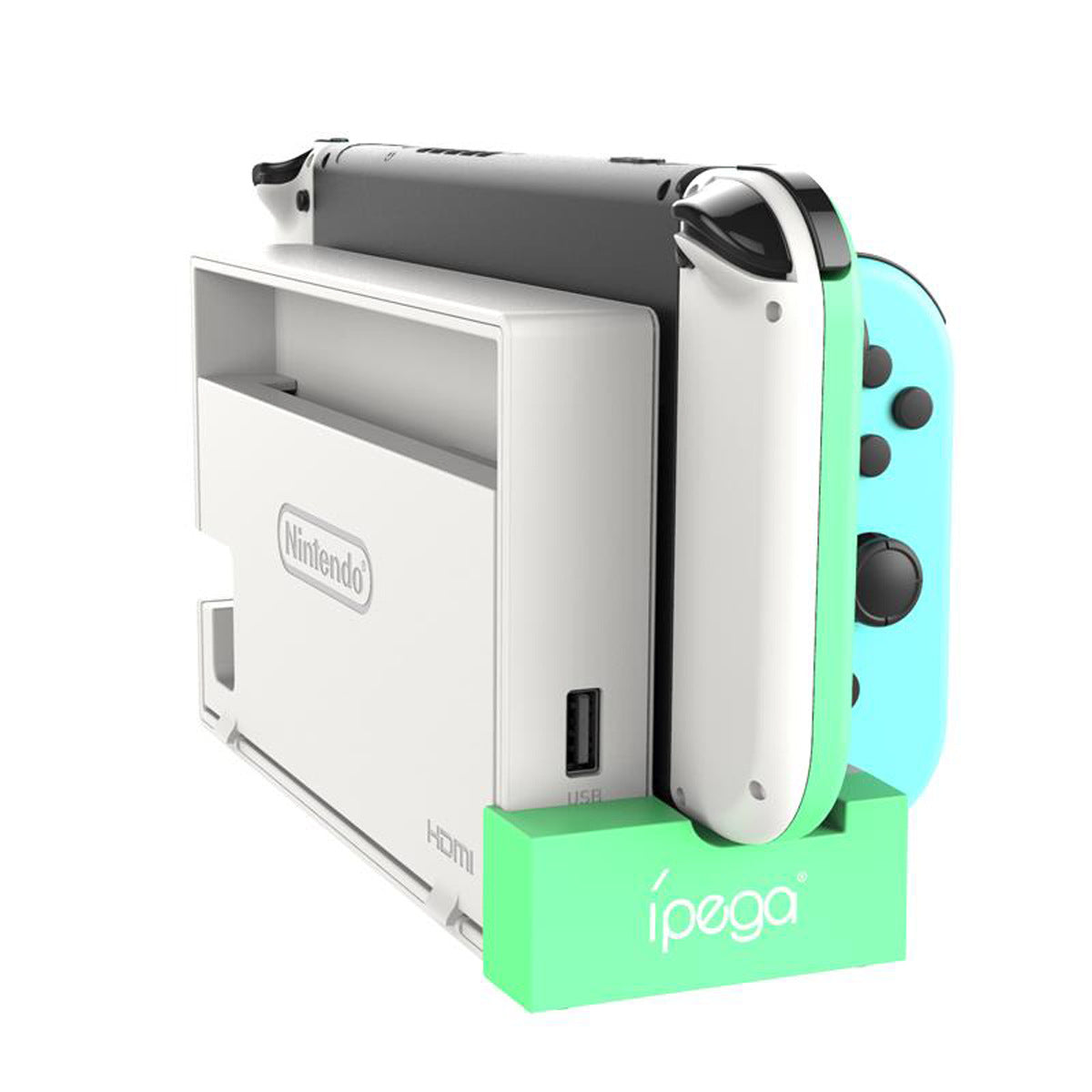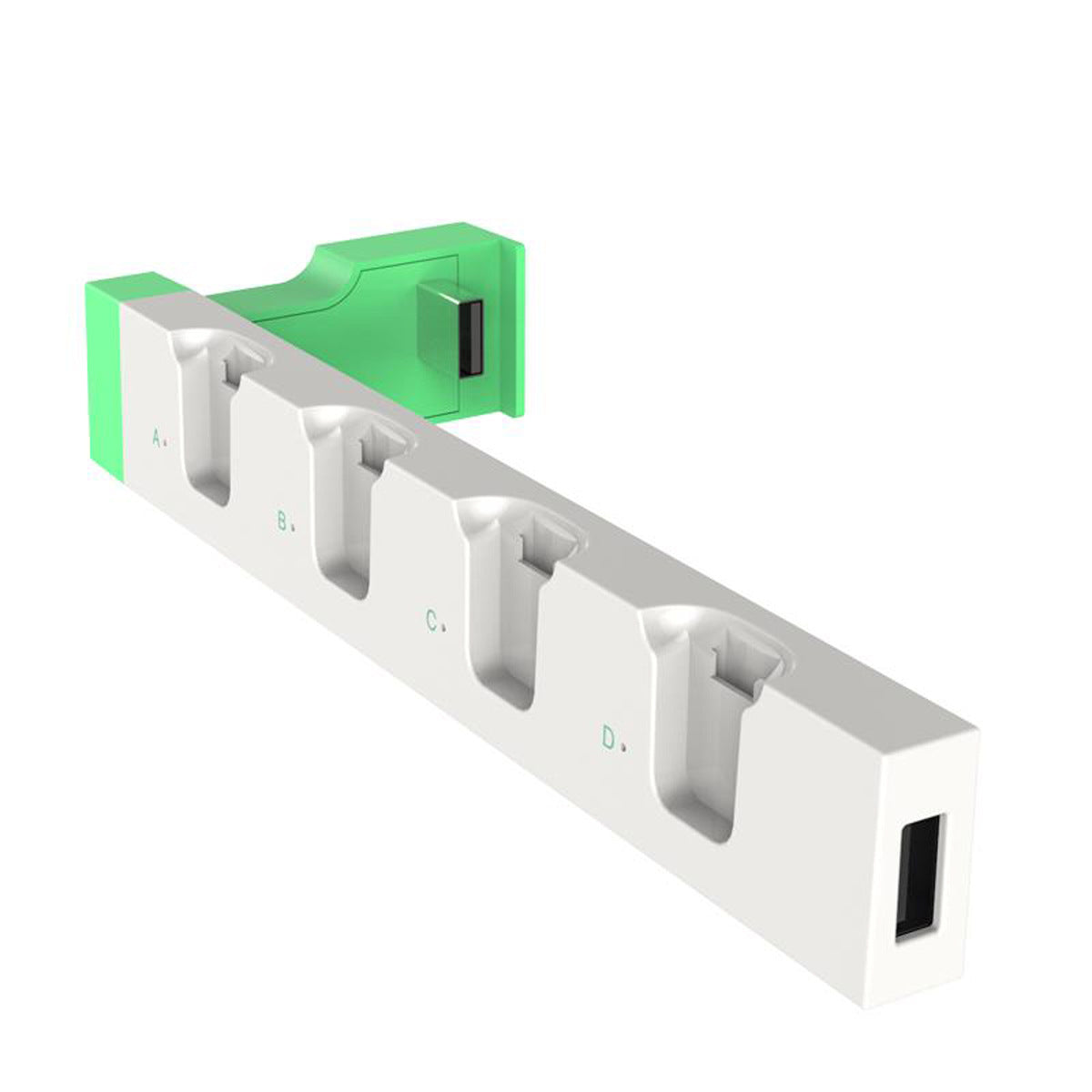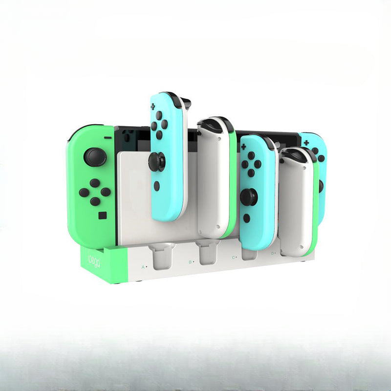Charge your Nintendo Switch Joy-Con controllers quickly and conveniently with this N-Switch joy-con four-slot fast charger. The sleek green design enhances your gaming setup while providing efficient power to your controllers.