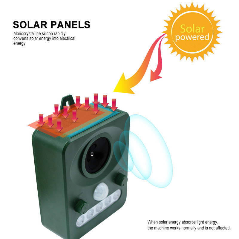 Solar Ultrasonic Bird Repeller Mosquito and Cockroach Repellent with LED Light, ABS Shell Technology, and Rechargeable Battery