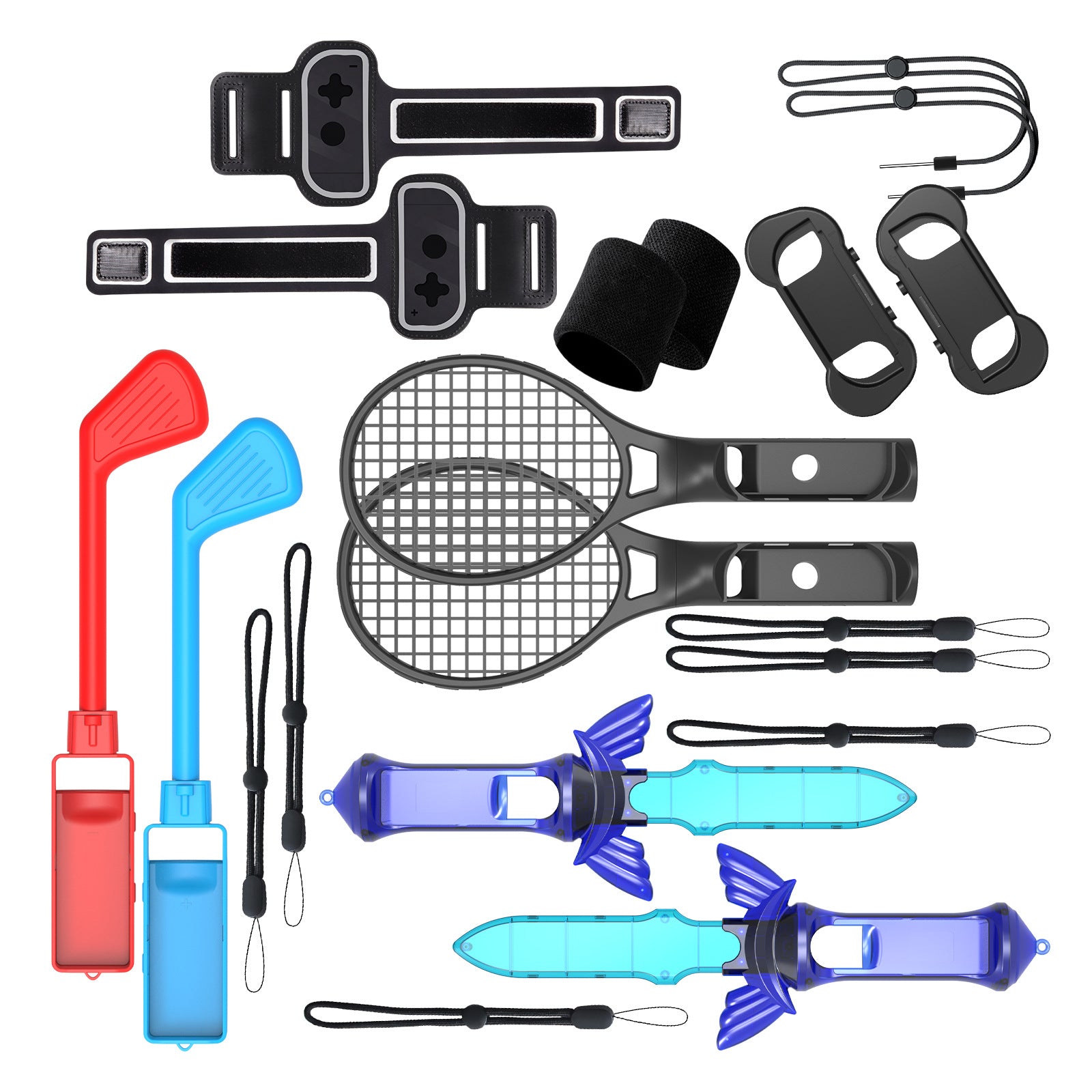 Switch 12-in-1 Sports Kit with Tennis Rackets, Golf Clubs, Leg Strap, Arm Band, Wrist Guards, Light Sword, and Grip Handles - Compatible with Nintendo Switch