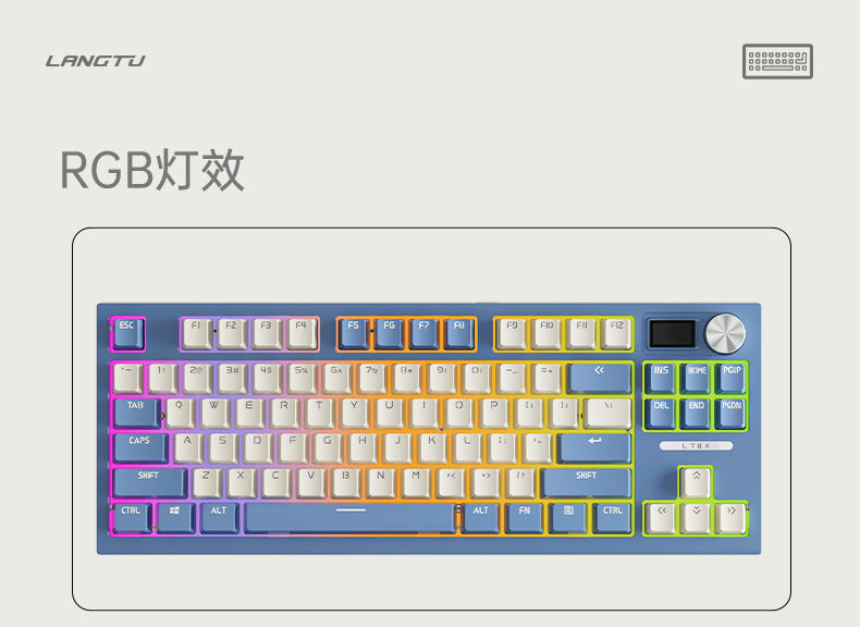 Elevate your typing and gaming experience with the Langtu LT84 Third Mock Examination Mechanical Keyboard. This versatile keyboard offers a perfect blend of features for enthusiasts and professionals alike, featuring a Sea Air Mechanical Shaft, RGB lighting, Bluetooth and 2.4G wireless connectivity, and a customizable light-emitting display.