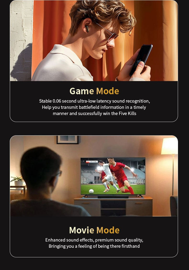 Stereo Sound - Dual-ear synchronous connection with deep bass