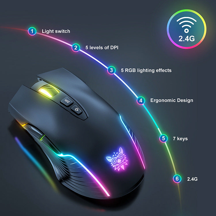 Wireless Gaming Mouse with Bluetooth Charging and RGB Luminous Lighting - Esports Mechanical Mouse with High Precision 1600dpi