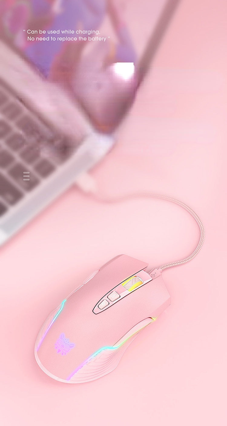 The mouse features RGB lighting that can be customized to your liking, creating a personalized gaming experience. It also comes with a USB charging cable for convenient charging.